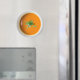 Un imán de sopa de tomate cremosa para tu nevera. Esto fue hecho a partir de una fotografía real.
