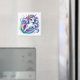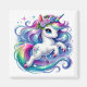 Este imán cuadrado se muestra con una impresión de arte de un lindo unicornio mágico.