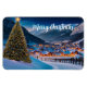 Magnet se muestra con una estampada festiva de la escena de la ciudad invernal de los árboles de Navidad. Personalizar este artículo o compra tal cual. Imagen con licencia de Pixabay