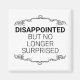 Un imán de diseño con la cita "Decepcionado pero ya no sorprendido" entre dos líneas decorativas. Los componentes del diseño se pueden cambiar, incluyendo el color y el contenido textual y las propiedades de texto. que permiten personalizar.