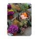 Una divertida variedad de flores y plantas otoñales con calabazas y calabazas. ¡Bonita decoración otoñal! Foto tomada en octubre de 2017.
