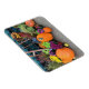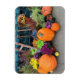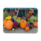 Una exhibición de bonitos de calabazas y flores. Bonita decoración de jardín otoñal.