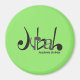 Imán redondo con el logo oficial de Jubal Academia de Artes sobre el fondo verde característico de la escuela. Un detalle único para quienes forman parte de esta comunidad musical o desean apoyar su misión. Ideal para neveras, pizarras o cualquier superficie metálica.