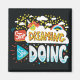 Cuidada cita colorida de "Stop Dreaming Start Doing" con arcos de lluvia, estrellas y cabeza de unicornio.