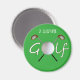 Personalizable "I Love Golf" Magnet. Un imán verde con grises cruzó clubes de golf con una pelota blanca de golf en el centro. También se puede personalizar el color del imán.