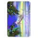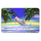 Imán fotográfico con mi original imagen de Navidades tropicales 3d de un delfín lindo celebrando a Navidades usando un gorra rojo y sosteniendo un bastón de dulces entre palmeras decoradas.