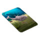 Un delfín sonriente lindo sobre un fondo oceánico de fantasía azul. Un regalo perfecto para cualquiera que ame estos increíbles animales