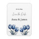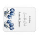 Asegúrese de que sus huéspedes marcan sus calendarios con este elegante personalizable Delft Blue Tulip Guardar el imán Boda de fechas. El diseño se compone de un cúmulo de tulipanes acuáticos clásicos azules y blancos que le confieren al imán un estilo refinado de inspiración europea, perfecto para cualquier frigorífico. Personalízalo con los nombres de la pareja Anna & James, la fecha boda 10.16.20XX, o la simple solicitud Guardar la fecha.