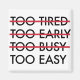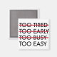 Demasiado Cansado Muy Temprano Muy Ocupado Muy Fácil imán. Un imán de entrenamiento motivacional con la lista "Demasiado cansado, muy temprano, muy ocupado, muy fácil" con las tres principales excusas tachadas. Un gran regalo para corredores, corredores, levantadores, atletas y todo aquel que intente ponerse en forma.