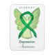 La depresión utiliza una cinta verde para apoyar la concienciación sobre su causa. El imán personalizado presenta un imán de arte de cinta de conciencia verde con el mensaje "Apoyo a la toma de conciencia sobre la depresión". El arte de la cinta de conciencia verde se puede personalizar con mensajes personalizados para hacer imanes de mercadería de gran causa para recaudadores de fondos, regalos de conciencia u otros eventos o ocasiones de causa especial.