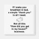Para el amante del sarcasmo que hay en todos nosotros. Echa un vistazo a este ingenioso diseño de “Si te preparo el desayuno en la cama, un simple gracias es todo lo que necesito. No todo este asunto de cómo entraste en mi casa” en ropa y regalos.