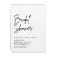 Invite a los invitados a celebrar a la futura novia con estas invitaciones modernas y minimalistas para despedida de soltera en clásico negro y blanco. El diseño simple presenta "despedida de soltera" en escritura informal a mano, con los detalles de su evento debajo en letra moderna de ceniza suave negra.