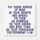 Arreglen estas palabras mías en vuestros corazones y mentes; atántalas como símbolos en vuestras manos y atántalos en vuestras cabezas. Deuteronomio 11:18