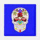 Este intrigante diseño al estilo del Día de los Muertos tiene un cráneo de azúcar con un rosa, lirios y diamantes rojos, con un estilo hippie o boho. El cráneo está colocado sobre un fondo azul brillante. Si a usted o a su destinatario le gustan los cráneos o los temas del Día de Muertos, esta puede ser la elección adecuada para ellos.