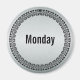 Gráfico de círculo negro y gris metálico para los recordatorios de organización diarios para casa u oficina. Este imán organizador es para el lunes.