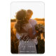 Un exquisito imán fotográfico boda con sus hermosas fotografías bodas. Una elegante caligrafía blanca domina el "día más feliz de la historia", adornado con un corazón decorativo, adorna la imagen con un texto personalizado del nombre de la pareja y la fecha boda creando un ambiente atemporal e íntimo. El texto se coloca delicadamente al otro lado de la foto, y contrasta suavemente con el telón de fondo, sacando a la luz el romanticismo y sentimentalidad del momento. ¡Un bonito recuerdo de las fotos de tus bodas, perfecto para conmemorar tu día especial! También haremos un maravilloso regalo para un aniversario, o para celebrar la primera Navidad como recién casados.