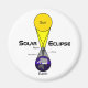 Un diagrama simplificado que muestra la mecánica de un eclipse solar, con el sol, la luna y la Tierra alineados. También se muestra la umbra, una región en forma de cono de la sombra más oscura proyectada por la luna sobre la Tierra y la penumbra, una sombra parcial del eclipse. El mismo proceso se aplica a un eclipse solar total.