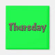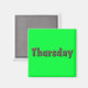 Días de la semana - Jueves: un imán de calidad etiquetado como "Jueves" en un estilo y con un color de fondo de su elección que se puede usar fácilmente, por ejemplo, como trotamundos de memoria pegando la lista de compras del lunes a la puerta del frigorífico con él, o que se usa con otros en el set para uso educativo con niños en este diseño por Stronsy. Existen otras variantes de la serie, entre ellas "Meses del Año" y "Números"