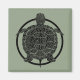 Dibujo de una tortuga de mapa en un círculo. El color de fondo se muestra a través del espacio blanco de diseño. Inspirado por la escultura artística metalizado. Negro sobre verde.