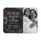 Elegante, moderno y moda imitación de dibujos florales de rosa dorado impresos en imanes de tarjetas boda negro, Save-the-Date. Este diseño clásico y sofisticado es perfecto para una pareja casera moderna y elegante. Personalice con su propio mensaje en la parte delantera, así como un monograma inicial personalizado en la parte posterior. Todo el diseño de impresión fotográfica.