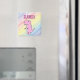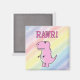 Cosa personalizado enojado t-rex. imanes personalizados. Fondo arcoiris pastel. Diseño original personalizado. ¡Rawr!