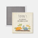 Imán para guardar la fecha con un diseño lindo que presenta 4 dinosaurios. 2 están volando y 2 están en el suelo. Creado con acuarelas.