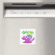 Imán de cocina que muestra un lindo pterosaurio (también conocido como pterodáctilo o pteranodon) y un estegosaurio. Ilustracion ©2019 Michael C. Paul https://mikepaulart.com