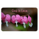 Este imán presenta flores de corazón rosadas sangrantes con el reconfortante mensaje de que Dios es amor.