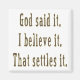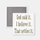 Las letras marrones decían: "Dios lo dijo. Lo creo. Eso lo resuelve". Una manera estupenda de compartir tu fe en Dios y tu fe en tu religión. Un regalo maravilloso para Navidades, Pascua, cumpleaños o cualquier hora especial. Fantástico, también para ocasiones religiosas como las ordenaciones, bodas, bautizos, primeras comuniones, confirmaciones y cualquier día sagrado.