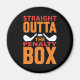 El imán de diseño del jugador de hockey incluye texto rojo y dorado en cada lado que lee Straight Outta the Penalty Box! También cuenta con bastones de hockey sobre silueta y un disco.