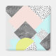 Este diseño abstracto presenta un collage de formas geométricas, colores pastel, puntos de polka y hormigón.