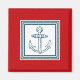 Diseño de temática náutica con decoración ancla en cuadrados rayados sobre fondo rojo