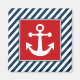 Diseño de temática náutica con decoración de ancla en cuadrado sobre fondo rayado azul y blanco