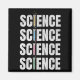 Ilustracion grunge colorido con diseño de texto "Ciencia, ciencia, ciencia" y decoración de tubos de ensayo coloridos