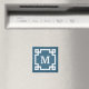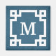 Diseño monograma con decoración de borde clave griega sobre fondo azul grueso