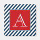 Diseño de monograma de estilo náutico sobre fondo rayado blanco y azul
