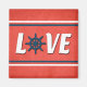 Ama el diseño náutico con rueda de vela y rayas decoración sobre fondo rojo grueso