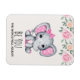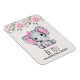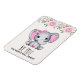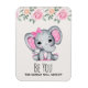 Magnet que tiene el dicho: Sé tú, el mundo se ajustará. Diseñado con un bonito ilustracion color elefante rosa. Ella tiene unas orejas puntiagudas rosadas y blancas de polka y un arco de cinta rosada en la parte superior de su cabeza. La parte superior está decorada con un bonito ramo de rosas.