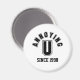 ¿Tienes un doctorado en Ser Dolor en la Influencia? Si es así, este divertido imán de "Annoying U" (You) en negro es perfecto para usar alrededor de hermanos o de cualquier otra persona a la que te guste molestar. Con una sensación de memorabilidad universitaria, este humorístico diseño tipográfico sería un gran regalo para ti mismo o para cualquier cantidad de gente fastidiosa que puedas conocer. Fácil de personalizar, añada el año en que nació u otro texto personalizado de su elección. Haga clic en el botón "Personalizar" para encontrar opciones de personalización adicionales.