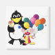 Pingüino gracioso y payaso con globos y personajes de dibujos animados con helados. Personalice fácilmente este diseño agregando su nombre o texto o cambiando el color de fondo de un rango de más de 200 colores. (haga clic en Personalizar, Editar>fondo, por favor, mantenga el texto dentro de las directrices con puntos de color rojo).