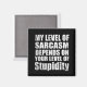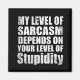Si te gustan las citas sarcásticas graciosas o los grandes diseños humorísticos, este lema original "Mi nivel de sarcasmo depende de tu nivel de estupidez" es para ti. ¡Es un regalo excelente para tu familia, amigos o para ti mismo! Este diseño es ideal para todo aquel que ame el sarcasmo y el humor. Si te gusta esta graciosa cita, echa un vistazo a otras obras de arte similares en omitay store. Mantente a salvo y gracias por apoyar a un artista local.