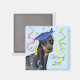 Felicita a tu graduado favorito con un regalo que incluye a un lindo graduado de Doberman Pinscher usando un mortero en medio de una ráfaga de confetti.