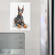 This artwork is part of a coordinated collection and is also available on a matching mug, magnet, cell phone case, acrylic keychain, and sandstone coaster, making it easy to create a cohesive Doberman gift set.