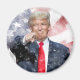 Imán Donald Trump señala con bandera estadounidense