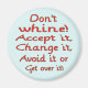 No te quejes de aceptarlo, cambiarlo, evitarlo o superarlo. Un poco más largo que el botón tradicional "No whining" con la barra roja, pero más al punto. Pasemos a soluciones y dejemos de quejarnos.