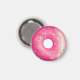 Un lindo imán con un delicioso ilustracion de un donut rosado con espolvorines coloridos.