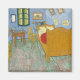 "El dormitorio de Vincent van Gogh en Arles" (1889) es un cuadro que capta la simplicidad y la tranquilidad de un dormitorio en la casa del artista en Arles, Francia. El trabajo presenta el característico uso audaz del color y la perspectiva de Van Gogh, presentando un espacio sereno e íntimo. La habitación está poco amueblada, con una sencilla cama de madera, una mesita y algunas sillas. Las paredes están decoradas con bloques de color simples pero vibrantes, mientras que el suelo está cubierto por una alfombra estampada. La pintura transmite una sensación de calma y soledad, reflejando la conexión personal del artista con este lugar durante su estancia en Arles. Los pinceles de Van Gogh son lisos y los colores, aunque sencillos, crean un ambiente armonioso y tranquilo, con los contrastantes amarillos, azules y rojos que atraen la atención del espectador a lo largo de toda la composición.