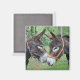 Un imán con una foto de dos amigables burros grises marrones tocando las narices con los ojos suaves y sus orejas onduladas apuntando hacia delante. La fotografía fue tomada en un show en Francia donde los burros son muy populares.