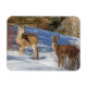 Dos ciervos de cola blanca parados en un campo nevado al lado de los arbustos rojos.