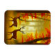 Mimán en un ilustracion de dos ciervos, un bulto y una paloma, contra un fondo de bosque de otoño, en tonos marrones, dorados amarillos y rojos naranjas